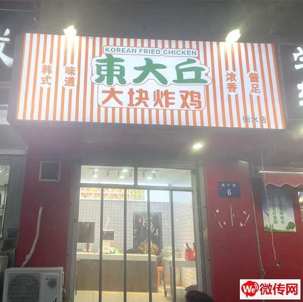 本店位于衡水桃城和平西路康宁街交口东南角,康宁街6号,十字路口拐角,位置好,附近成熟小区众多,客源有保障。目前经营大品牌炸鸡店东大丘大块炸鸡,口味好,回头客众多,美团排名前三,因个人原因现整体转让,带所有装修、设备、材料、品牌等。提供密料配方,教技术。价格可议,随时可看。